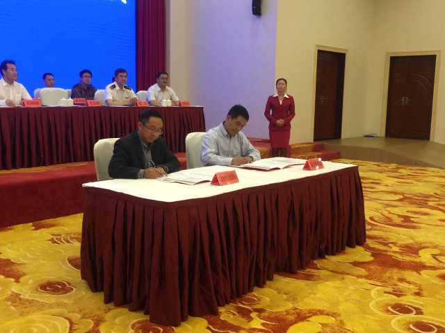 聯(lián)合驗(yàn)收組組長(zhǎng)、海關(guān)總署加貿(mào)司李志輝副司長(zhǎng)與云南省政府副秘書長(zhǎng)和麗貴簽署聯(lián)合驗(yàn)收紀(jì)要