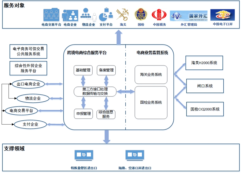 2、實現(xiàn)跨境電商綜合服務(wù)平臺與各監(jiān)管單位的信息互聯(lián)互通;