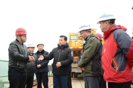 謝應(yīng)文董事長(zhǎng)視察州河特大橋時(shí),當(dāng)看到州河兩岸,縱向橋墩墩柱林立,主墩達(dá)到標(biāo)高,0#塊澆筑完畢,正在緊鑼密鼓地進(jìn)行掛籃施工澆筑。工地正有條不紊地忙碌著,工地上變化較大,進(jìn)展較快,他面露喜色感慨地說道,你們辛苦了!看到了希望,工程建設(shè)在往前推進(jìn);希望你們?cè)倥?,再攻關(guān),再加快!在一定時(shí)間,我會(huì)再來看望大家,一起加油鼓勁,一起拚搏沖刺!