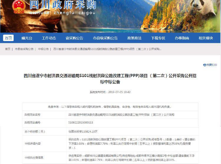 近日,集團(tuán)成功中標(biāo)四川省S101線射洪段公路改建工程(PPP)項目。7月5日,四川政府采購網(wǎng)正式發(fā)布中標(biāo)公告。