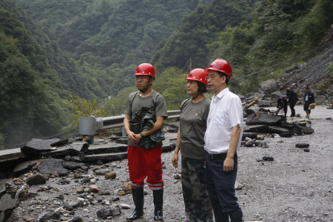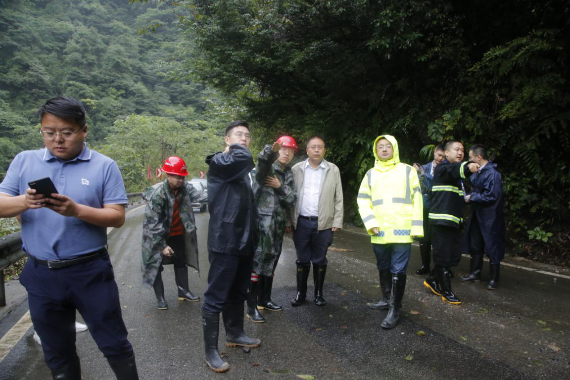 21日大邑縣縣委書(shū)記李燎等領(lǐng)導(dǎo)現(xiàn)場(chǎng)查看道路損毀情況