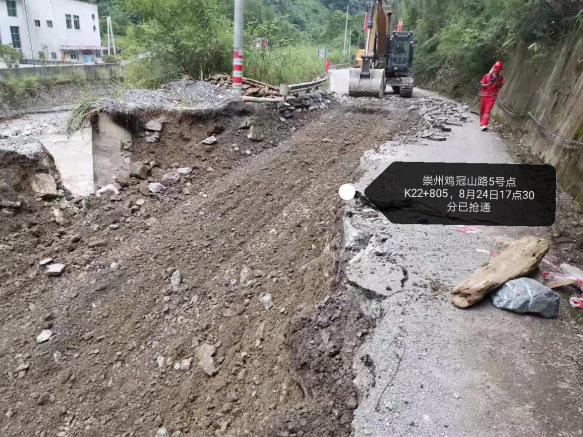 在成都市交通勘察設(shè)計(jì)院張毅院長(zhǎng)、崇州市交通局譚鳳君局長(zhǎng)、華川集團(tuán)黨委副書(shū)記施繼梅蹲守一線,現(xiàn)場(chǎng)指揮,搶險(xiǎn)隊(duì)伍全力開(kāi)展道路搶險(xiǎn)作業(yè)。
