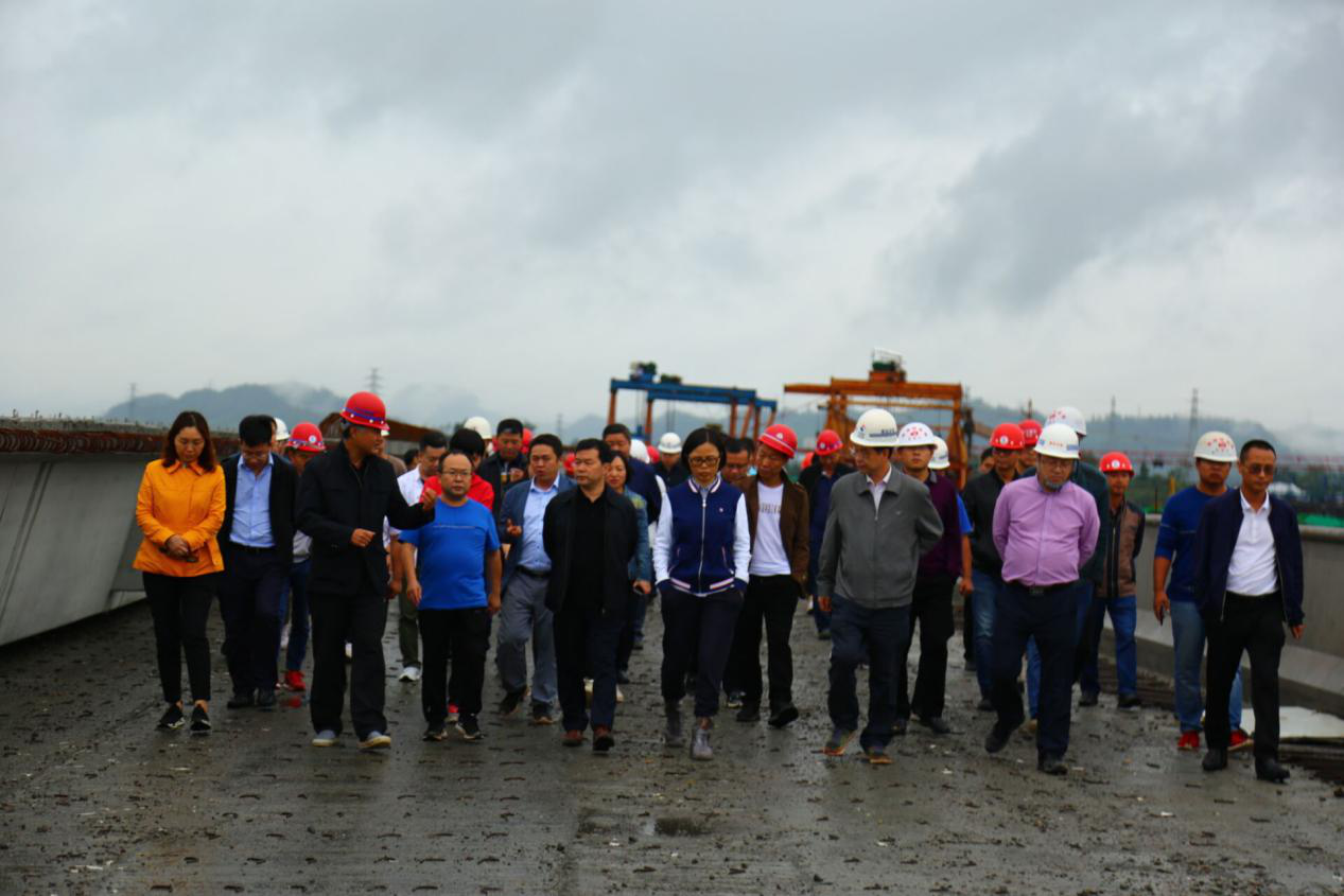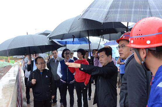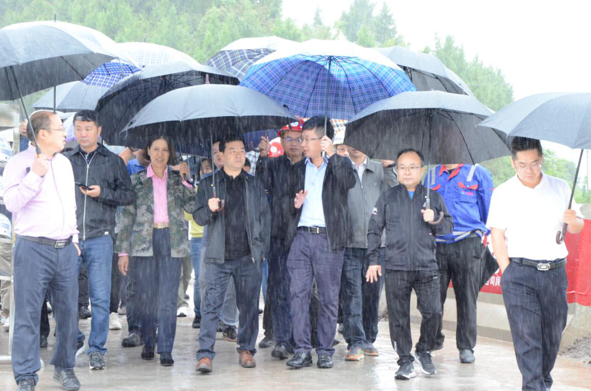 9月17日,集團(tuán)黨委書(shū)記、董事長(zhǎng)、總裁謝應(yīng)文、常務(wù)副總裁駱曉紅等領(lǐng)導(dǎo)率集團(tuán)各職能部門(mén)負(fù)責(zé)人,在營(yíng)達(dá)項(xiàng)目向年底通車(chē)目標(biāo)發(fā)起總攻、決戰(zhàn)決勝的關(guān)鍵時(shí)刻,冒雨深入營(yíng)達(dá)高速項(xiàng)目施工一線現(xiàn)場(chǎng)督導(dǎo)慰問(wèn)。營(yíng)達(dá)公司總經(jīng)理謝應(yīng)武及參建單位負(fù)責(zé)人等陪同。