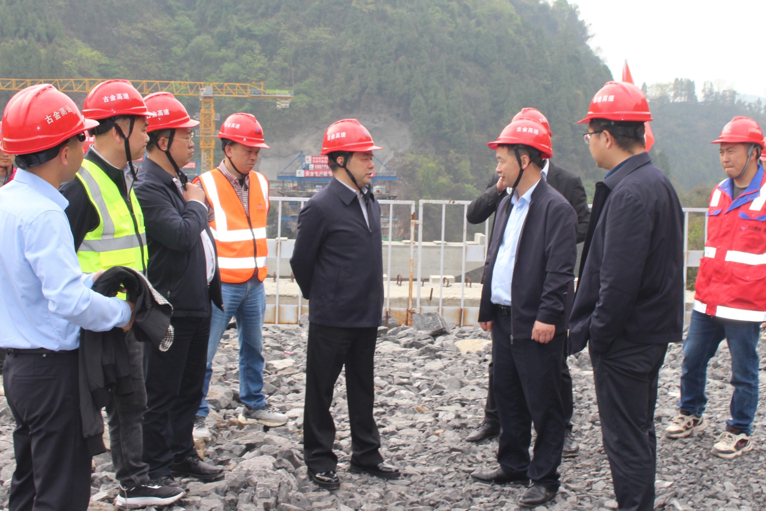 為貫徹黨的二十大精神,落實調(diào)查研究之風(fēng),著力解決項目建設(shè)堵點難點,凝心聚力抓實生產(chǎn)建設(shè),4月11日,集團董事長、總經(jīng)理、黨委書記謝應(yīng)文到古金項目調(diào)研指導(dǎo),深入了解項目復(fù)工復(fù)產(chǎn)推進情況,協(xié)調(diào)解決存在的困難問題。他強調(diào),要按照上級單位安排部署,堅決落實好全面復(fù)工復(fù)產(chǎn)要求,高效統(tǒng)籌項目管理,高標(biāo)準推進項目建設(shè),堅定信心、鉚足干勁,全力保障年底通車任務(wù)。
