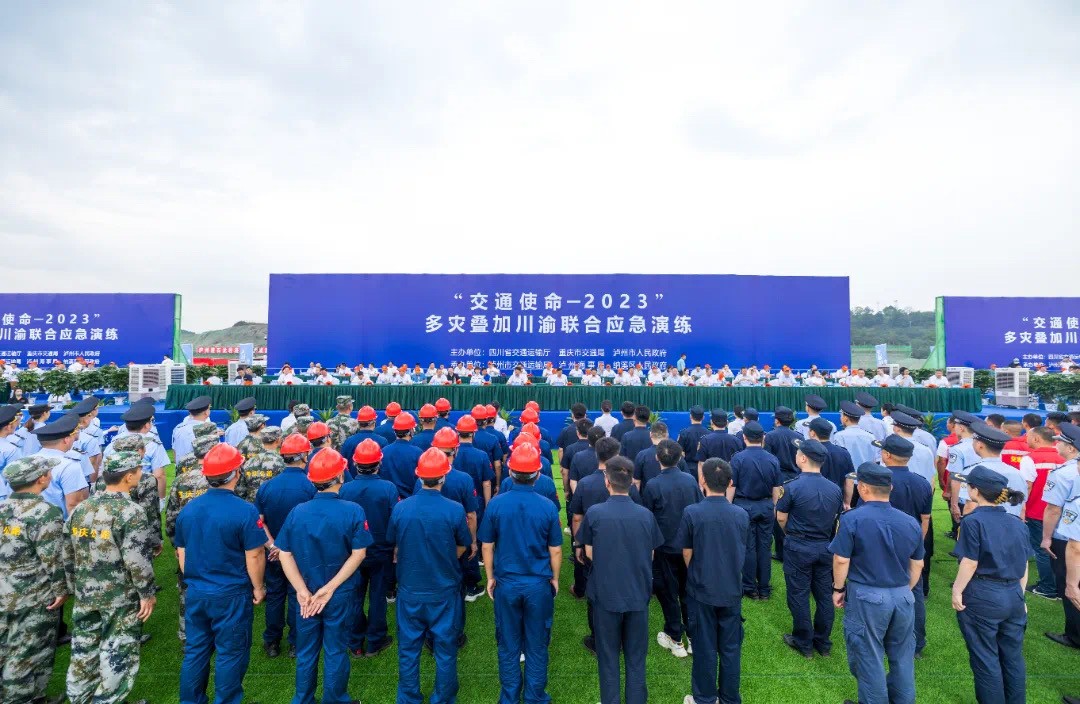 6月14日上午,“交通使命-2023”多災疊加川渝聯(lián)合應急演練在瀘州市納溪區(qū)石龍巖碼頭成功舉行。本次應急演練由四川省交通運輸廳、重慶市交通局、瀘州市人民政府聯(lián)合主辦。省交通運輸廳黨組副書記、副廳長張琪出席演練并致辭,交通運輸部、省公安廳、應急管理廳、水利廳、重慶市交通運輸局、瀘州市政府等相關(guān)領(lǐng)導蒞臨現(xiàn)場指導。華川集團董事長、黨委書記、總經(jīng)理謝應文受邀現(xiàn)場觀摩演練。