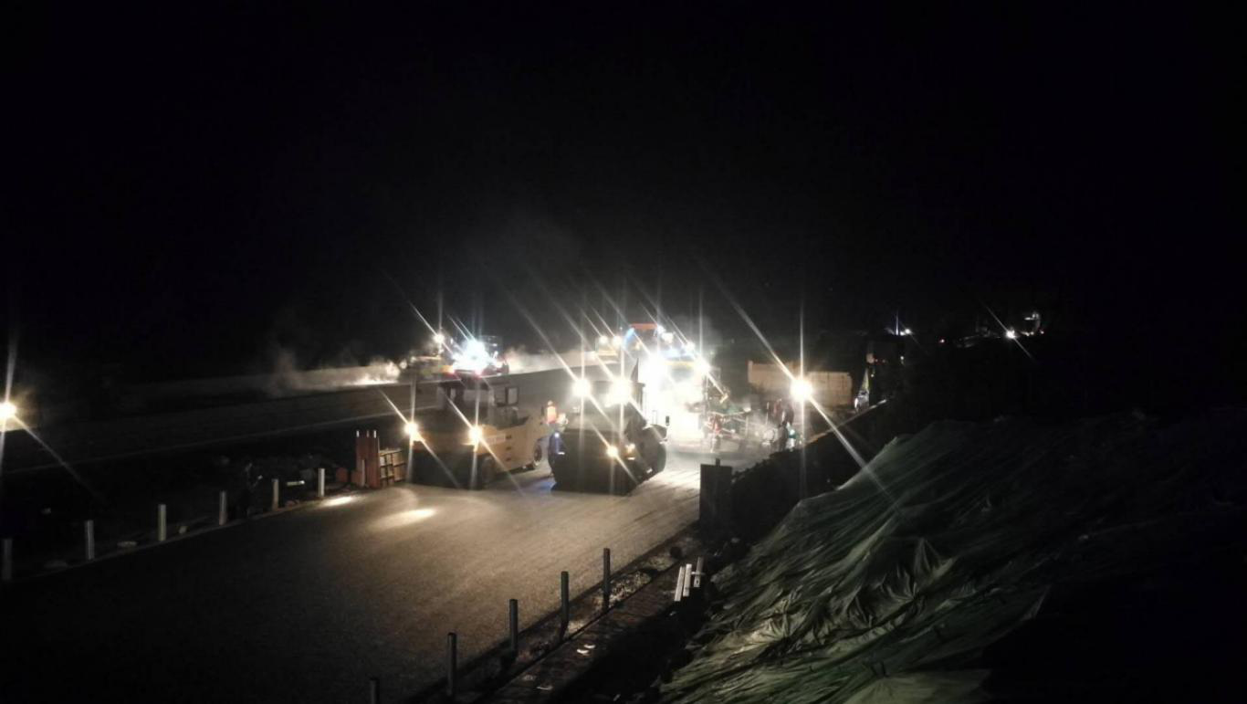 懷芷路面項目進(jìn)入11月份以來,全面掀起24小時施工模式,采取各科室、各主要負(fù)責(zé)人每天一碰頭,每天一匯報制度,各負(fù)責(zé)人上報每日的施工段落完成情況及明日施工計劃,由項目部領(lǐng)導(dǎo)和各科室負(fù)責(zé)人組成夜班巡查小組,對沿線夜班施工情況進(jìn)行檢查、督促落實。截止12月16日,經(jīng)過全體參建員工的晝夜奮戰(zhàn),懷芷路面項目已完成主線所有瀝青中面層鋪筑,完成主線瀝青上面層45%。懷芷路面項目施工一線的參建員工們精神飽滿,斗志昂揚,為確保全年目標(biāo)實現(xiàn)奮勇趕超著...