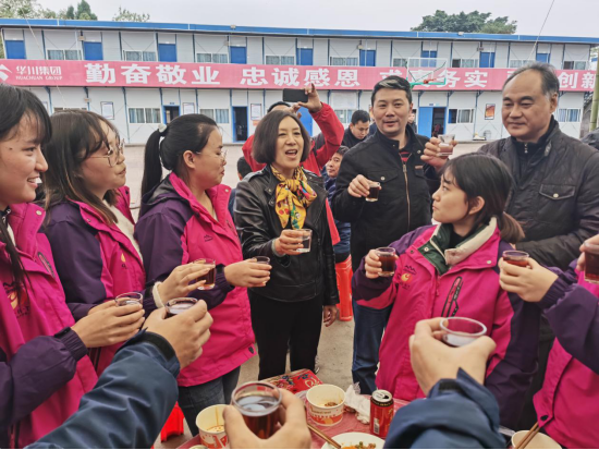 (集團(tuán)黨委副書(shū)記施繼梅與大家共飲慶功酒)