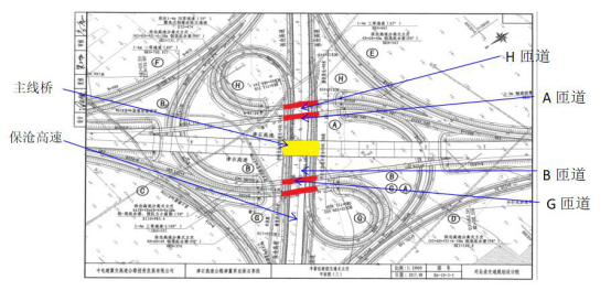 作為一個“高跨高”工程,其中有6條匝道順接保滄高速實行兩條高速公路車輛自由轉換,同時設計有5座橋梁上跨保滄高速,均采用60m跨度的鋼箱梁一次跨越,在保滄高速中隔帶內,未設置橋墩。擺在津石總包部面前有很多難題需要克服。如保滄高速交通流量大,斷交時間不足的問題;安全隱患高;賠償費用高;大縱坡,小半徑的問題;行政主管部門要求高等問題。