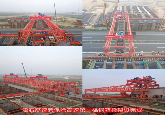 辛留佐樞紐互通位于高陽縣辛留佐村東,是津石高速全線僅有的三座跨接高速施工樞紐互通之一,主要用于津石高速與保滄高速交通流相互轉換,互通型式采用變形苜蓿葉加半直連式匝道,設計主線和11處匝道,分別上跨保滄高速5次,互通區(qū)內設置主線橋500米/1座,匝道橋940米/4座,通道涵洞10道。鋼箱梁跨徑60米,橋梁下部結構均設計在保滄高速路基坡腳兩側,該互通上跨部分均為鋼結構箱梁,共計14片,需要14次跨越保滄高速進行架設,其中鋼結構箱梁最大長度為35米,總量101噸,由于要上跨河北省正在運行的交通主干道保滄高速公路進行施工,該項工作更是成為了津石高速JSLQ5標的年度重點工作,同時也備受各方關注。
