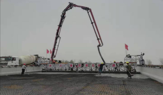 11月12日下午,津石項目一工區(qū)淀南新堤大橋最后一聯(lián)橋面鋪裝順利澆筑。至此,津石高速JSLQ5標段橋梁一隊橋梁工程全部結束,同時也意味著津石項目一工區(qū)全體施工人員在“決戰(zhàn)60天”大干熱潮中的晝夜施工、辛勤付出取得了回報。第一分公司總經理羅劍虹、津石總包部總工程師隆賢偉攜總包部有關部室人員及一工區(qū)將士到場祝賀。